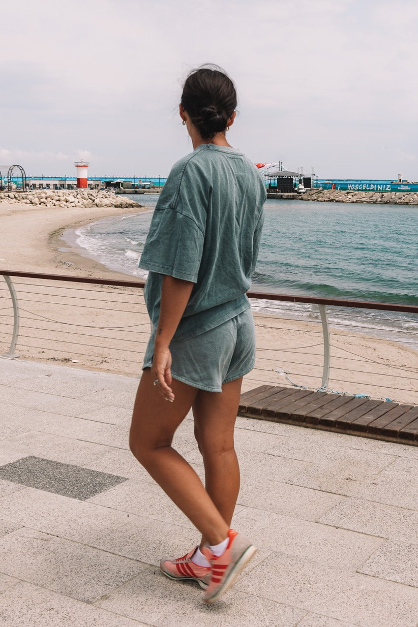 Effortless style with a vintage touch. The Ladies Vintage Balat Set is made from 100% Cotton Heavy Jersey (300 GSM), offering durability and comfort. Featuring relaxed fit shorts and a slightly oversized tee, this set is designed to last, becoming a staple in your wardrobe for seasons to come.